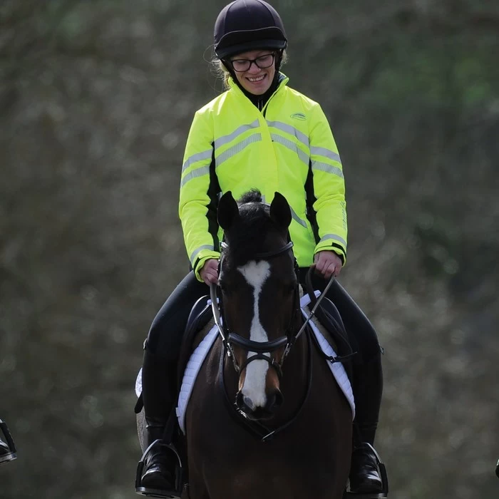 The WeatherBeeta Reflective Lightweight Waterproof Jacket is a waterproof and breathable all weather, lightweight multi functional jacket, fully lined with polyester mesh fabric. Featuring a centre front 2 way zip, reflective branded puller, storm flap, hand zip pockets and inner collar with fleece lining for additional warmth and comfort. The extended back hem is ideal for riding. The raglan cut sleeves offer touch tape tab closures at cuffs for a snug fit with stylish reflective tape design on front, back & sleeves providing easy visibility. Comes in 2 hi vis colours of yellow & pink. EN1150 Certified. Cold machine wash with dark colours, hang to dry.